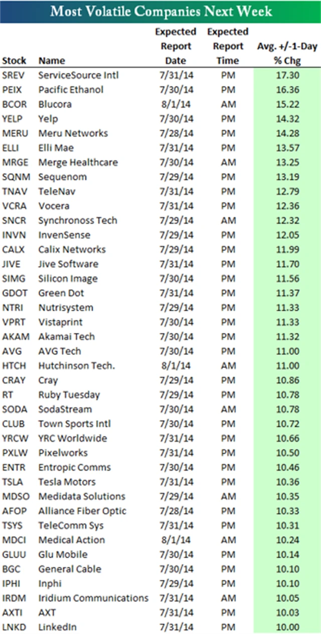 V posledním červencovém týdnu pokračuje také v Evropě výsledková sezóny, ta má ale tradičně na trh menší vliv než v USA. Dominantním faktorem tak bude stále dění v souvislosti s Ukrajinou, na trh s ropou pak působí opět zesilující boje v Libyi.