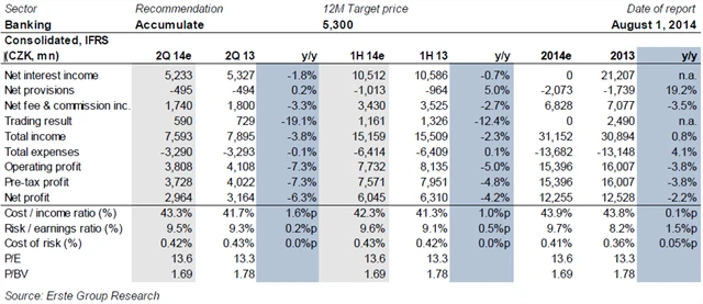 31/7 Erste Group Bank - hospodářské výsledky za 2Q2014