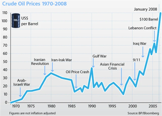Celkový dopad války je negativní, a to navzdory omílané analýze pojednávající o tom, jak 2. světová válka zastavila recesi. Spíše si vzpomeňte na 70. léta 20. století, která jsou relevantnější a lepší analogií současných problémů v Gaze, Iráku, na Ukrajině, v Libyi a Sýrii. Někdo by sice mohl namítnout, že tentokrát je to jiné, že tehdy jsme byli příliš závislí na Blízkém východě. Jenže ceny ropy se tenkrát pohybovaly mezi 10 a 25 dolary za barel.