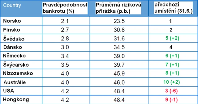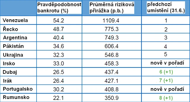 Společnost CMA Vision pravidelně monitoruje vývoj rizika bankrotu jednotlivých zemí i konkrétních firem. Nejrizikovějším státem světa zůstala Venezuela. Nejvíce však "propadaly akcie" Irska, Portugalska a Spojených států.