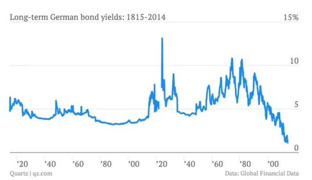 Japonsku se to samé přihodilo v 90. letech. Nyní, o 20 let později, je jeho nominální HDP níže než před začátkem ztracených dekád. Evropa se Japonsku začíná podobat. Inflace je už jen 0,4 %. Nedá se ani očekávat, že se někdy v blízké době zvedne. Bezprostřední reakcí trhu na špatná data z Evropy byl pokles výnosů z německých dluhopisů pod psychologickou hranici 1 %. Poprvé v historii od napoleonské éry má Německo financování tak výhodné (Japonsko si bylo takto levně schopno půjčovat deset let).