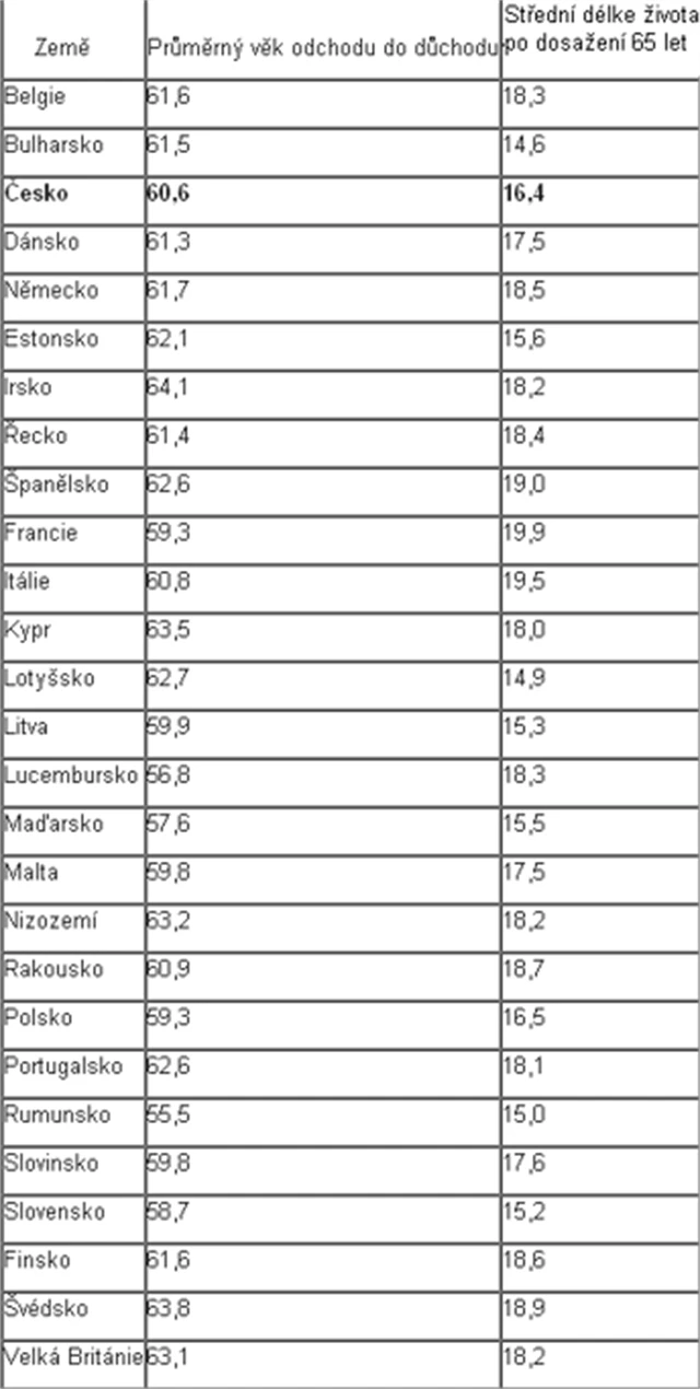 Zvyšování důchodového věku v evropských zemích tedy jednoznačně zvyšuje nároky občanů na vlastní finanční zabezpečení. Příliš na tom v Česku nezmění ani chystaná důchodová reforma. Mnoho profesí v 65 letech vykonávat nejde, navíc se bude důchodový věk ještě prodlužovat (navrhuje se dokonce na 68 let). Již nyní v EU pracuje pouze 40 % mužů starších 60 let.