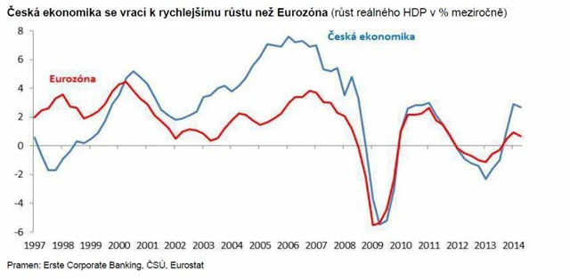 Českému hospodářství se v posledních pěti letech nedařilo. Zatímco v letech 1999 až 2008 ekonomika měřená růstem HDP překonala růst eurozóny o 30 procentních bodů, během krizových let 2009 až 2013 se český HDP zmenšil o 3,4 %, tedy více než v případě eurozóny, jejíž ekonomika se smrskla o 2,7 %.