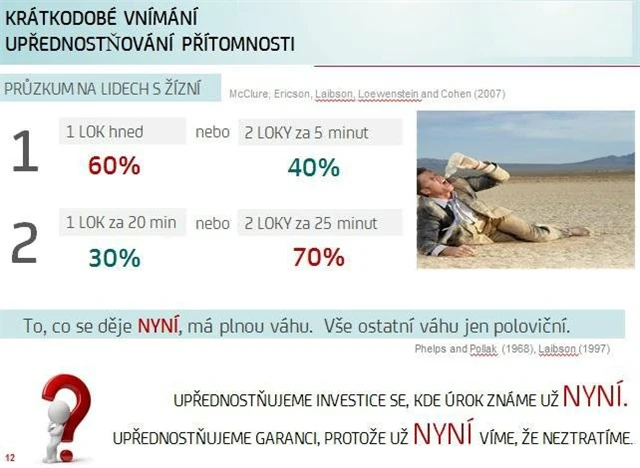 Mátl: Nejvýrazněji je v člověku zakořeněna ztráta a averze k riziku. 10% ztráta nás bolí 2-25krát více, než se radujeme z 10% zisku. Ztrátové investice navíc držíme v průměru třikrát déle než ziskové.