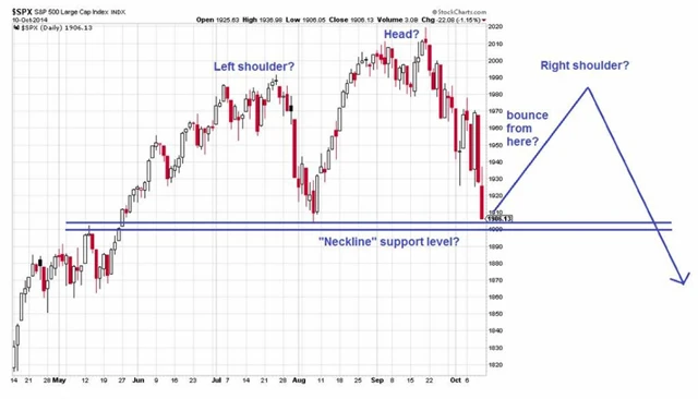 I když se mu to ale povede, existují technické signály, že se poklesy vrátí se zvětšenou silou. Index totiž na grafu vykresluje ukázkovou formaci hlava-ramena.