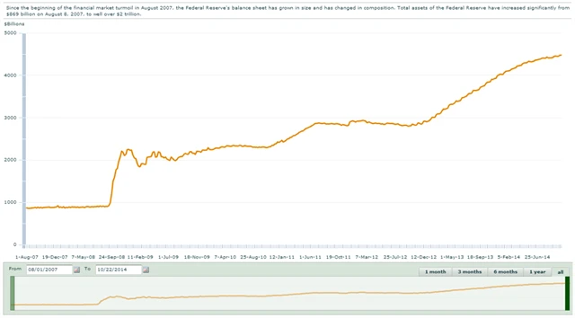 Očekává se, že Fed, respektive FOMC ve středu po skončení svého dvoudenního zasedání oznámí konec třetího kola kvantitativního uvolňování. Po šesti letech tak americká centrální banka utne tištění levných peněz, se kterým začala v roce 2008 v reakci na bankrot Lehman Brothers a následný kolaps akciových trhů. Spolu s tím začne odpočítávání do prvního zvýšení základní úrokové sazby. V reakci na nedávný propad amerických burz se ale začaly ozývat hlasy, že investoři na definitivní zavření kohoutů Fedu nejsou připraveni, a banka by proto měla zahájit nové kolo QE a sazby ponechat přibité na technické nule.