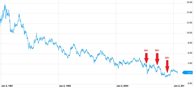 Se značně vyhraněným názorem na spojitost vývoje výnosů amerických vládních dluhopisů s utahováním měnové politiky Fedu nedávno přišel výkonný ředitel společnosti Monetary Metals Keith Weiner, známý svými kontroverzními postoji. "Všech 67 ekonomů dotázaných v dubnu agenturou Bloomberg věří v kvantitativní teorii peněz. To znamená, že v jejich očích rostoucí objem peněz dodaných do oběhu programem QE zvyšuje ceny, na dluhopisovém trhu vyvolává očekávání inflace a v investorech logicky očekávání růstu výnosů," vysvětluje Weiner. "Přitom je ale evidentní, že všechna kola kvantitativního uvolňování měla na dluhopisový trh jen minimální vliv."