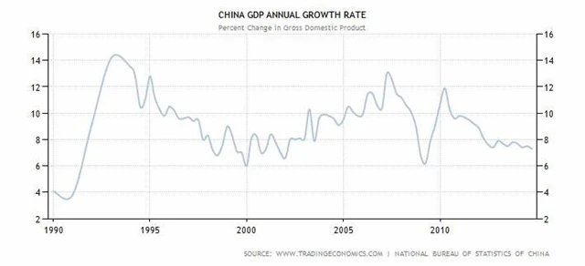Čínská vláda, která k probíhajícímu ochlazení ekonomiky dopomohla omezováním nabídky úvěrů, by ráda nadále viděla 7% růst. Pokud by totiž toto tempo udržela během následujících 10 let, čínská ekonomika by narostla na dvojnásobek a předehnala by Spojené státy, které se nyní pyšní pozicí světové jedničky. Začátkem měsíce ve Financial Times dokonce vyšla zpráva odkazující na údaje MMF o tom, že čínský HDP očištěný o vliv nižší cenové hladiny je již o něco vyšší než v USA.