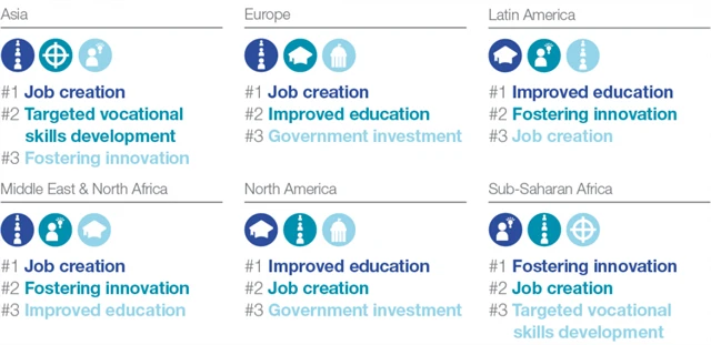 Ke klíčovým oblastem, které se musejí změnit, patří vzdělání. Školy a univerzity musejí klást důraz na učení dovedností, které stroje nezvládají, jako jsou spolupráce, kreativita a management. Zároveň je potřeba omezit lpění na úkolech, které mohou za lidi vykonávat stroje, jako jsou monitoring, výpočty a exekutiva.