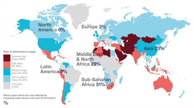 Nedostatek vody je problémem mnoha asijských zemí, finanční komplikace zase trápí Afriku. Experti oslovení Světovým ekonomickým fórem očekávají, že subsaharská Afrika bude do budoucna nejohroženějším regionem, jen těsně následována Asií.