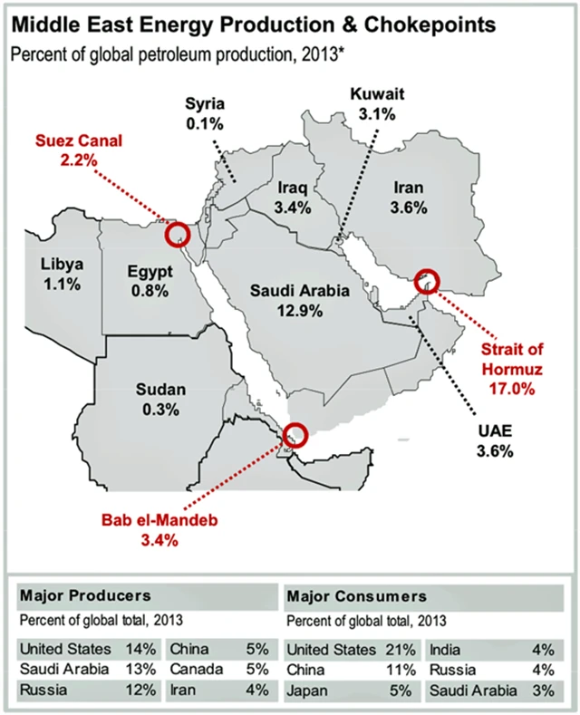 Oblast proslulá těžbou ropy je také dějištěm řady ozbrojených konfliktů, v posledních letech v například v Libyi a Sýrii. Velkou váhu v regionu má hrozba v podobě Islámského státu a konfliktu Izraele s Palestinci. Jak velký je potenciální dopad problémů na Blízkém s Středním východě na globální trh s ropou?