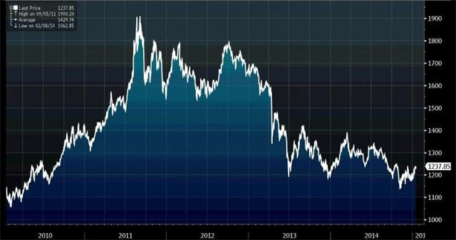Nejhlasitějším prognostikem na trhu se zlatem s nejvyšší předpovědí byl Peter Schiff z EuroPacific Capital. V loňském dubnu vystoupil se svou odvážnou predikcí, že "kvantitativní uvolňování Fedu vytáhne zlato na 5 tisíc USD za unci". Skutečnost byla taková, že zlato začalo rok na 1 200 USD a zakončovalo ho na asi 1 300 USD. Mezitím zažilo korekci k 1 150 USD. Ve chvíli, kdy byl program QE Fedu ukončen, se obchodovalo pod 1 200 USD za trojskou unci. Sečteno a podtrženo, cena zlata zůstává o 80 % níže, než byl Schiffův cíl.