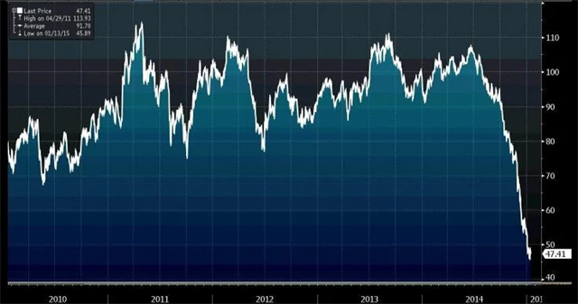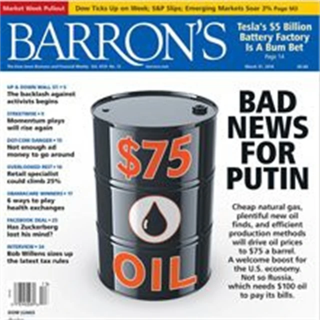 Téměř nikdo neodhadl, že by se cena ropy měla během roku 2014 propadnout na polovinu. Tento příběh expertům zcela unikl. Jedinou výjimkou byl Gene Epstein, který v březnu 2014 zaplnil obálku Barron's s barelem ropy za 75 USD. Vysvětloval, že nižší dlouhodobý výhled cen ropy povzbudí americkou ekonomiku a podrazí nohy Rusku. "Obrovská naleziště ropy a zemního plynu v USA i jinde ve světě stlačí cenu ropy ze současných 100 USD na 75 USD za barel během pěti let," tvrdil Epstein. S časovým horizontem se trochu netrefil, ale směr a míru změny cen odhadl jako jeden z mála celkem solidně.