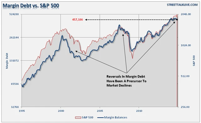 Žádná tržní rizika na obzoru, tak proč nezdvojnásobit pozici zapákováním?! Margin debt nedávno na trhu dosáhl historických maxim. Samotný rostoucí margin debt ještě neznamená problém. Ten přichází až ve chvíli, kdy je přehnanou páku nutné odbourat, to znamená provést deleveraging kvůli rapidně klesajícím cenám aktiv. Margin debt pak totiž násobí pokles cen akcií. Tento začarovaný kruh vede k dalším výprodejům a extrémně rychlým tržním poklesům. Investoři na to zírají s otevřenou pusou a paralyzovaní strachem sledují, jak se jejich kapitál vypařuje.