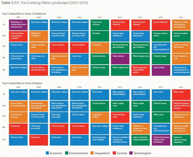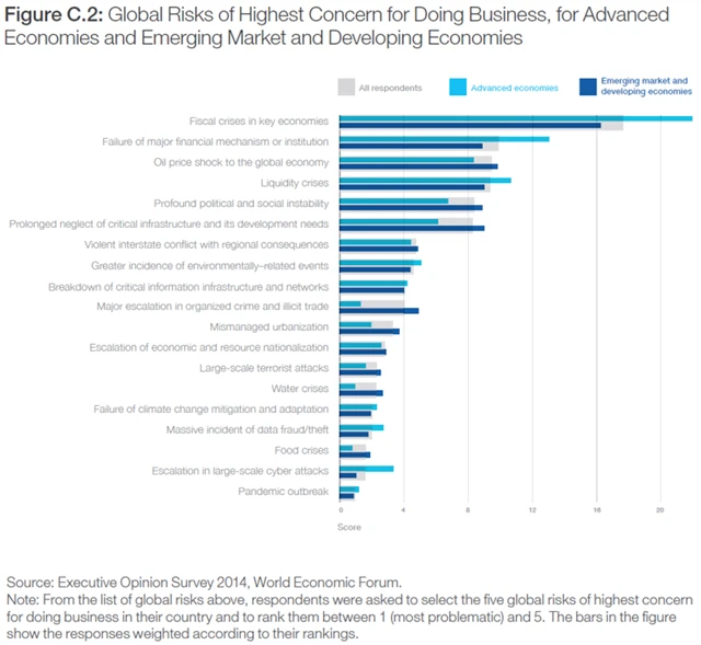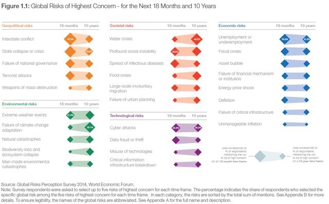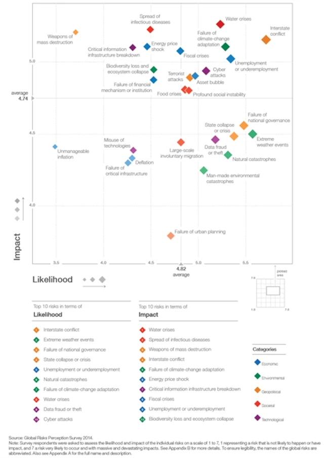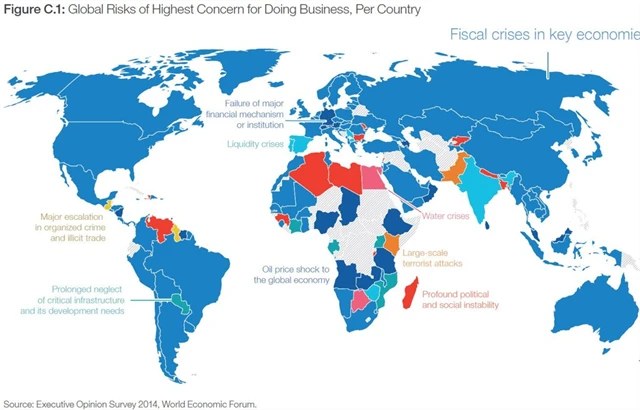 Čtvrt století po pádu Berlínské zdi je největším světovým rizikem mezinárodní (ozbrojený) konflikt. To je jedno z hlavních sdělení rozsáhlé prezentace globálních rizik sestavené Světovým ekonomickým fórem.
