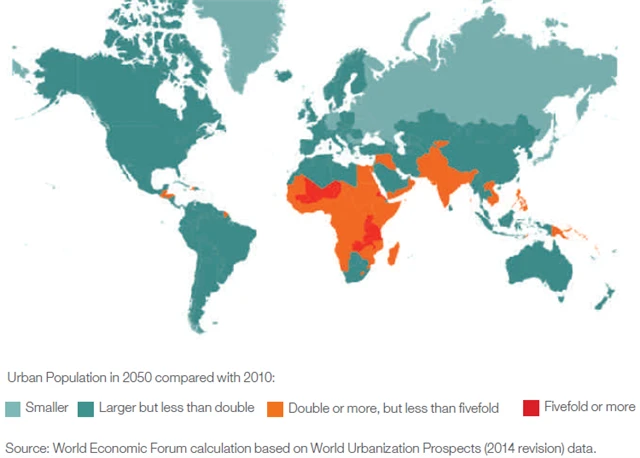 A pro zajímavost ještě jedna mapa. Urbanizace v rozvojových oblastech světa bude do roku 2050 pokračovat velice intenzivně.