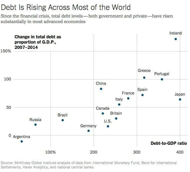 Jeden by řekl, že světová finanční krize a její možná ještě významnější dovětek v podobě krize dluhové povede ke globálnímu snižování zadlužení. Opak je pravdou, na což poukazuje i aktuální analýza společnosti McKinsey Global Institute. Vládní, firemní i soukromé dluhy za uplynulých zhruba 8 let téměř všude na světě narostly.