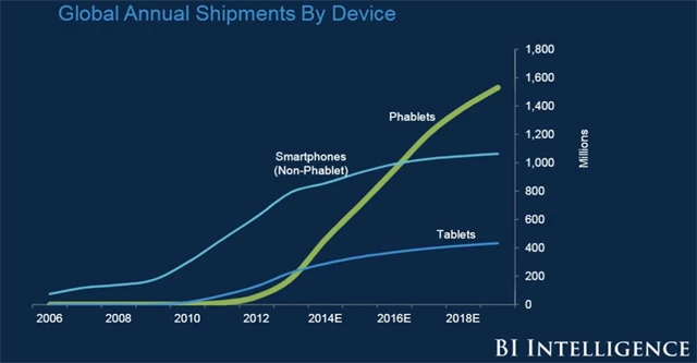 - Rostou prodeje fabletů (větším smartphonům, které jsou něco mezi telefonem a tabletem). V roce 2015 má být na světě dodána více než miliarda chytrých telefonů.