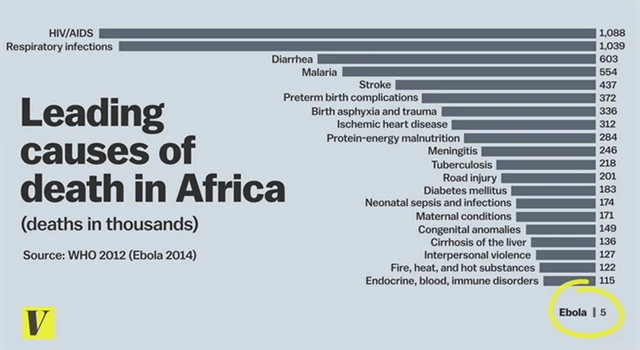 - Hrozba eboly zaplavila loni snad všechna média. Přitom je na světě mnoho dalších příčin úmrtí, které jsou tisícinásobně nebezpečnější než ebola.