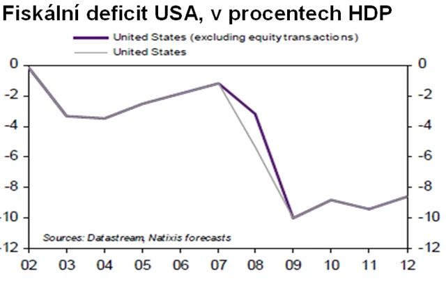 Firmy však své zisky neinvestují, protože poptávka je slabá a volné kapacity vysoké. Hromadí tedy cash a vyplácejí dividendy nebo vykupují své akcie. A protože firmy a domácnosti snižují své zadlužení a přestaly utrácet (investovat), tak na sebe vzal tuto odpovědnost stát, který začal utrácet peníze místo nich, aby zvedl ekonomiku. Tím však zvýšil svůj dluh. Je však jasné, že to není dlouhodobě udržitelné, protože tento státní dluh jednou budou muset stejně domácnosti a firmy zaplatit, ať už ve formě vyšších daní, nebo inflace. Zatím to ovšem funguje.