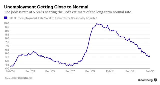 Situace na trhu práce se musí dále zlepšovat. "Silnější trh práce bez nějakých stagnací je jedním z faktorů, který by mou důvěru posílil," nechala se slyšet Yellenová. Ukazatelem oslabení na trhu práce je například míra nezaměstnanosti, která v únoru dosáhla 5,5 %. FOMC tento měsíc snížil odhady dlouhodobé nezaměstnanosti na 5-5,2 %. To je limitní míra a její další pokles spolu s růstem mezd by mohl tlačit vzhůru inflaci. Sečteno a podtrženo, trh práce v USA musí ještě urazit kus cesty, než centrální bankéři usoudí, že je zvyšování sazeb na programu dne.