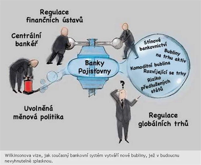 "Vše, co způsobilo nedávnou krizi – uvolněná měnová politika a nerovnováha v mezinárodním obchodě – je v současnosti ještě větším rizikem než dříve," upozornil. "Základní problémy se vůbec nevyřešily." Wilkinsonova 24stránková studie popisuje, jak se banky mohou podílet na přifukování nových bublin, protože nebudou ochotné se smířit s nižšími zisky v důsledku vyšších kapitálových požadavků. Vynahrazovat si je budou na komoditních trzích a rozvíjejících se ekonomikách.