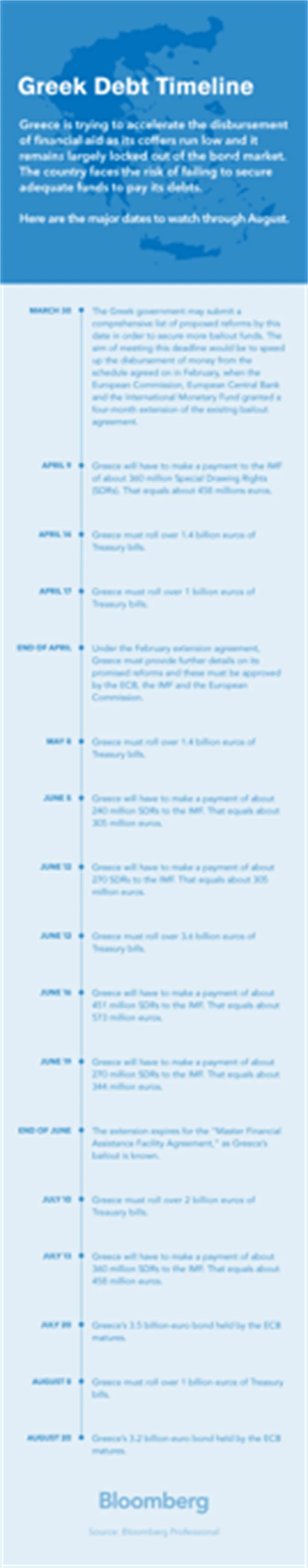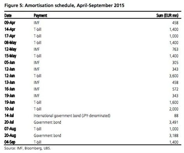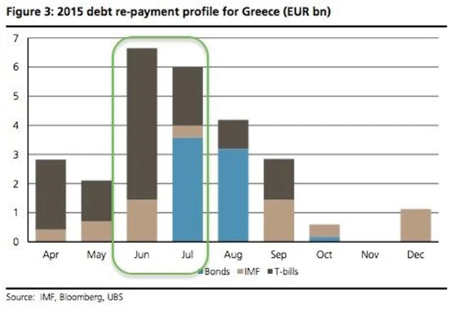 Řecku mohou dojít peníze už v dubnu, což by nejpozději v květnu mohlo vyvolat default, tedy neschopnost splácet půjčky. Jak vypadá řecký splátkový kalendář?