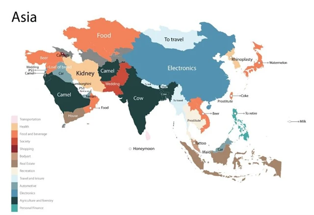 Některé země máme pevně asociovány s určitými produkty, například Itálie se pojí s pizzou a Japonsko s elektronikou. Které pojmy se však nejčastěji vyhledávají na internetu v souvislosti s cenou? To prozkoumal server Fixr.com.