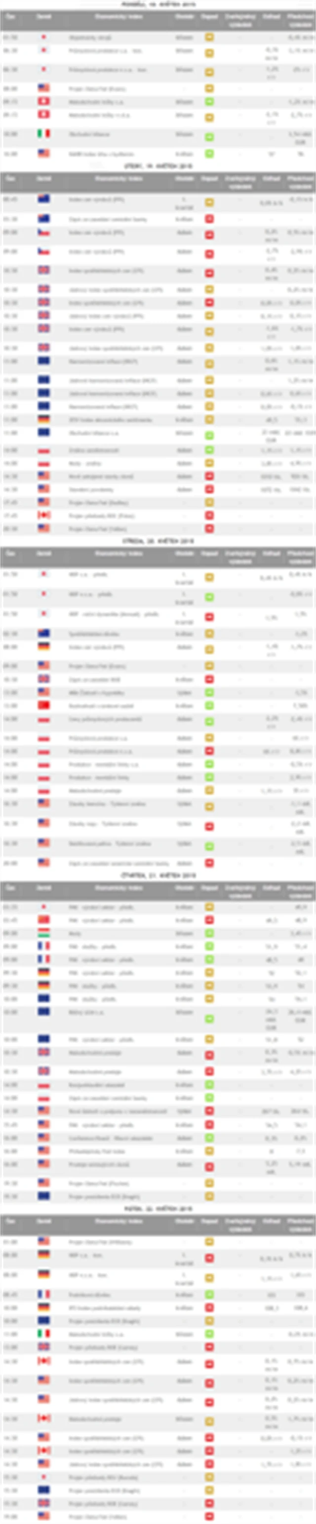 Týden bude poměrně bohatý na data a opět budou ta zajímavější přicházet z Evropy. Půjde zejména o indexy nákupních manažerů pro státy eurozóny, které doplní indexy Ifo a ZEW v Německu. Indexy by měly potvrdit solidní výkonnost evropských ekonomik, i když trh čeká mírný pokles. Koncem týdne bude zveřejněna struktura německého HDP v prvním čtvrtletí, což pomůže upřesnit stav a perspektivu místní ekonomiky.