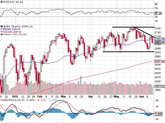 "Index S&P 500 se dále obchoduje v dlouhodobém rozpětí 2 035 až 2 070 bodů. Další silný support je okolo 2 040 bodů. V týdnu se naposledy před letními prázdninami sejdou guvernéři Fedu a je otázkou, zda dokáže rétorika Fedu po zasedání (pohyb sazeb se nečeká) zajistit tak silný impulz, aby index S&P 500 začal formovat trend," píše v pravidelném technickém komentáři pro Investiční web opční obchodník a zakladatel serveru Optionslock.cz Josef Košťál.