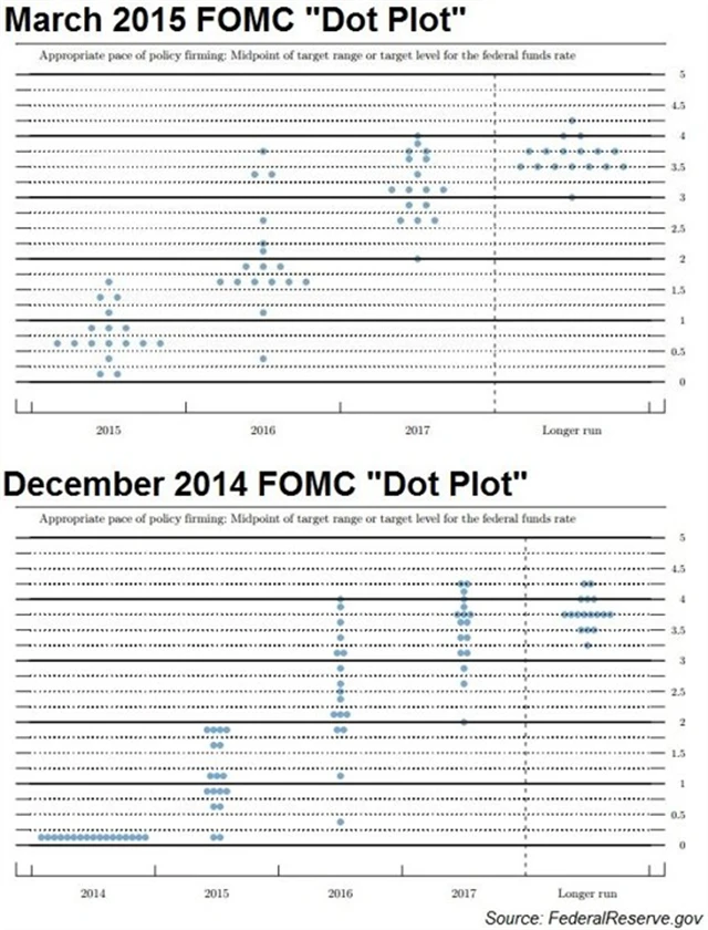 Ekonomická aktivita je ostře sledována Fedem, který podle ní nastavuje měnovou politiku. Ekonomika stále není dostatečně silná na to, aby centrální banka mohla začít zvyšovat sazby. Proto se také očekávání zvyšování sazeb posunulo z poloviny roku na září jako nejbližší termín. Členové FOMC nyní předpovídají sazby Fedu pro konec roku 2015 kolem 0,5 % nebo níže. Loni v prosinci ještě většina (9 ze 17) očekávala pro letošní rok sazby na 1 %.