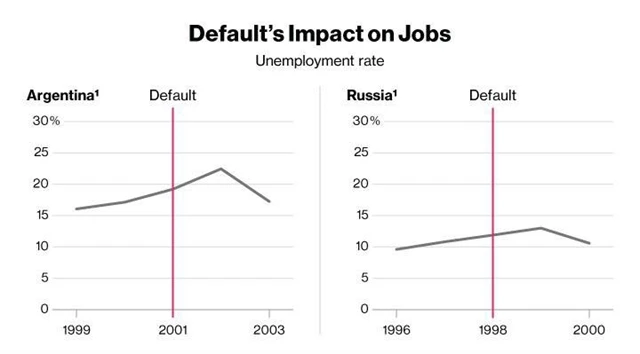 Případ Helénské republiky se velmi podobá dalšímu velkému případu bankrotu země, konkrétně Argentiny, která přestala splácet své dluhy v roce 2001. Argentina není jediným jihoamerickým státem, který se v posledních 25 letech ocitl v takové situaci, ale jde o jeden z největších bankrotů v historii.