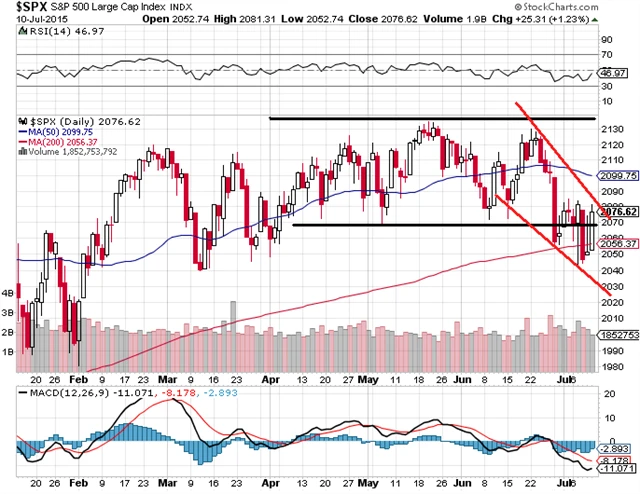 Hlavní americké akciové indexy v pátek stouply v naději na dohodu Řecka s jeho mezinárodními věřiteli. Nákupy na Wall Street podporoval také další silný růst cen čínských akcií. Dow v pátek připsal 1,21 % na 17 760,41 bodu, S&P 500 zpevnil o 1,23 % na 2 076,62 bodu a Nasdaq uzavřel se ziskem 1,53 % na 4 997,70 bodu. Index volatility VIX spadl téměř o 16 % pod 17 bodů a výnos 10letých vládních dluhopisů USA se zvýšil téměř o 8 bazických bodů na 2,4 %. V týdenním horizontu se ale indexy na směru neshodly, Dow za celý týden připsal 0,17 %, zatímco S&P 500 odepsal kosmetických 0,01 % a Nasdaq klesl o 0,23 %.