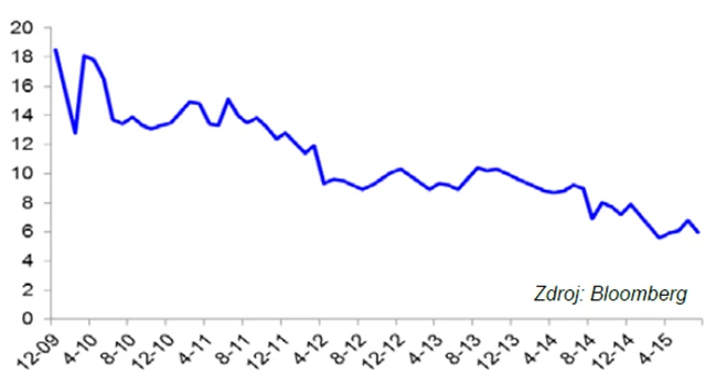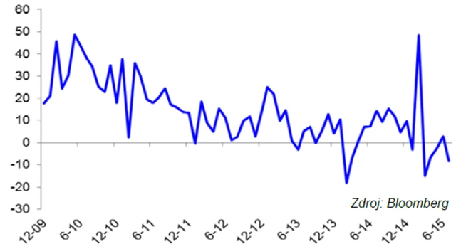 Data o průmyslové produkci a sentimentu nákupních manažerů v průmyslu (PMI) jsou v poslední době alarmující. Průmyslová produkce v červenci dosáhla růstu o 6, (po 6,8 % v červnu), což bylo i pod nejpesimističtějšími očekáváními trhu. Průmyslová produkce kontinuálně zpomaluje od konce roku 2013, kdy se růst ještě pohyboval okolo 10 %.