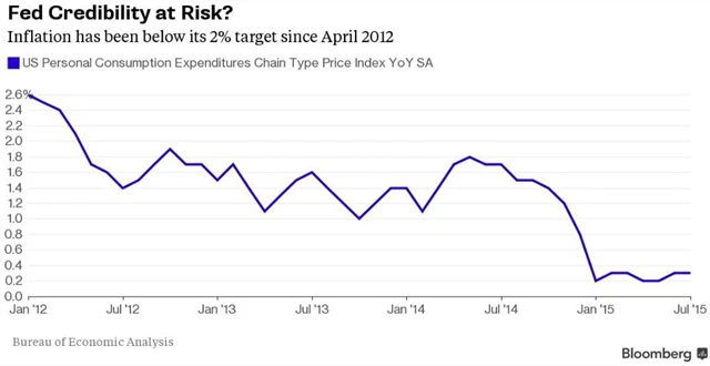 Tvůrci měnové politiky v červenci odhadovali, že na 2 % meziročně by se PCE měl dostat do konce roku. Tyto odhady se ale neshodují s předpověďmi zaměstnanců centrální banky, kteří připravují podklady pro zasedání bankovní rady americké centrální banky. Z dokumentu, který se v červenci dostal na veřejnost, vyplývá, že tito ekonomové předpokládají inflaci pod dvěma procenty ještě v průběhu let 2016 a 2017. Inflace podle nich poroste jen pozvolna.