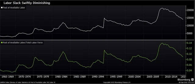 Míra nezaměstnanosti je v pásmu 5-5,2 %, kde je podle Fedu hranice, u níž ještě posilující trh práce nevyvolává inflační tlaky. To znamená, že míra nezaměstnanosti pod 5 % už podle americké centrální banky začíná inflaci akcelerovat.