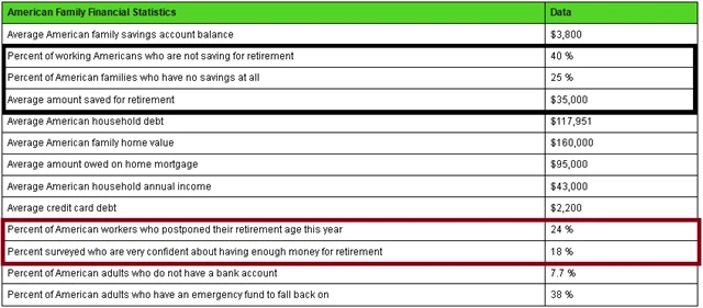 Tento rozkol je jasně vidět v různých statistikách. Příklad nabízí nedávný průzkum Bankrate.com, který odhalil, že v posledních 12 měsících muselo 30 milionů Američanů předčasně vybrat penzijní úspory.
