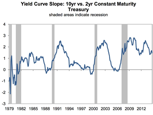 Dlouhodobé sazby v současnosti převyšují krátkodobé sazby a recese většinou přicházejí ve chvíli, kdy je vztah obrácený. "Každé poválečné americké recesi předcházelo významné zploštění, či dokonce převrácení výnosové křivky," vysvětluje Belski. "Podobně na tom byly i všechny medvědí trhy, které nedoprovázela recese. Sklon výnosové křivky zůstává velmi strmý a v následujících měsících by měl být ještě strmější."