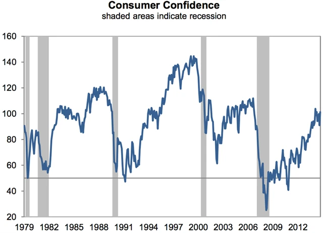"Důležitou roli pro zdraví a stabilitu ekonomického růstu (ale i akciového trhu) hraje důvěra," pokračuje analytik. "To je důvod, proč vnímáme jako povzbudivé, že se během aktuálního býčího trhu důvěra stále zlepšuje a současné úrovně se drží nad historickými průměry."