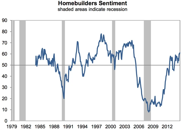 "Nemovitostní trh hrál v americkém ekonomickém růstu vždy důležitou roli, a proto je uklidňující, že jsou stavební firmy nejoptimističtější od roku 2005," upozorňuje Belski. "Co je však důležitější, každé recesi od doby, kdy se statistiky sledují, předcházelo zhoršení sentimentu ve stavebnictví."