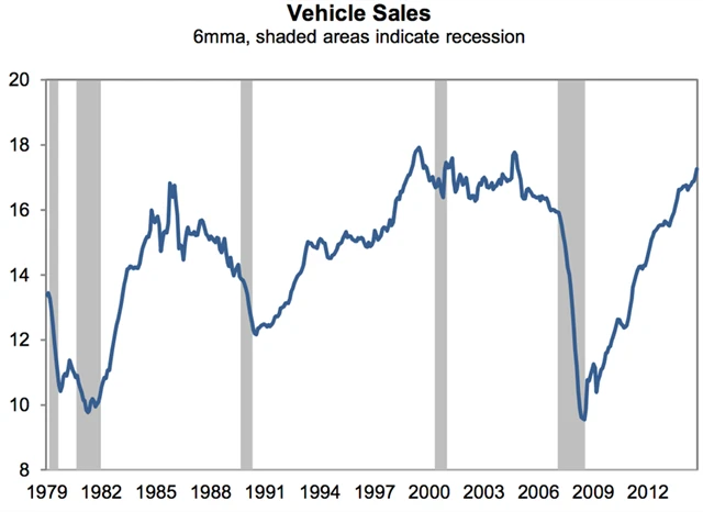 "Nákupy zboží dlouhodobé spotřeby, jako jsou například automobily, jsou další sledovanou oblastí, když si chceme udělat obrázek o síle ekonomiky," napsal Belski. "Spotřebitelé typicky upouštějí od těchto nákupů, když se ekonomické podmínky zhoršují. Aktuální data ale ukazují významné zlepšení prodejů aut, jsou na nejvyšší úrovni za více než desetiletí."