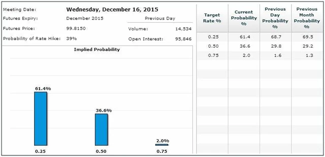 Pravděpodobnost růstu sazeb v prosinci dosahuje 38,6 %.