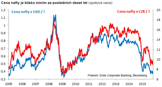 Vedle dostatku těžené ropy tlačí ceny dolů i to, že spotřeba neroste nijak závratným tempem. Vyspělé ekonomiky se nemohou nabudit k silnějšímu růstu a hlavním úderníkům v růstu HDP z rozvíjejících se zemí dochází dech (zpomalení v Číně, recese v Rusku i Brazílii).