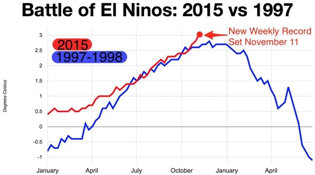 El Niño je každý rok unikátní a ten letošní ani není považován za nejhorší. Podle většiny ukazatelů byl nejextrémnější přelom let 1997 a 1998, který během 3měsíčního období přinesl nejvyšší teploty. Pokud ale přetrvají současné podmínky, může být rekord v roce 2015 pokořen.