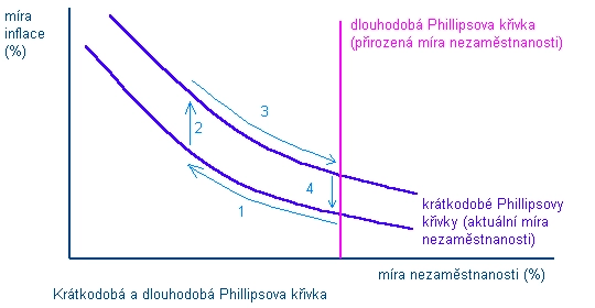 Přímý vztah nezaměstnanosti a inflace je spojen s ekonomickým modelem tzv. Phillipsovy křivky, který se těšil oblibě v 60. letech a začátkem 70. let. Podle něj je možné nalézt jedině určitý kompromis mezi nezaměstnaností a inflací (nižší nezaměstnanost a vyšší inflace a naopak).