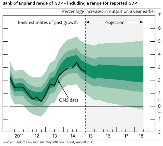 Ekonomové i statistici o problému s nepřesností ekonomických dat dobře vědí, a proto se od uvádění přesných údajů uchylují ke zveřejňování pásem. Je to patrné například z grafu, kterým Bank of England zveřejňuje data o HDP. Její údaje se pohybují v pásmu nejen u předpovědí na příští roky, ale také u minulosti.