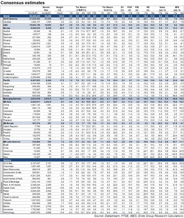 Příznivé makroekonomické prostředí se odráží v růstu tržeb a zisků firem. V důsledku toho se nadprůměrné valuace akcií nezdají Erste být překážkou pro pokračování růstu cen akcií. Globální trh proto mohl v prvním čtvrtletí posílit o 0-5 %.