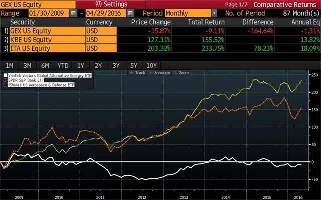 Když do prezidentského úřadu v lednu 2009 mířil Barack Obama, analytici investorům doporučovali věnovat zvýšenou pozornost rovněž alternativní energetice, jejímž je současný šéf Bílého domu velkým zastáncem. ETF VanEck Vectors Global Alternative Energy (GEX) ale během Obamova působení v Oválné pracovně velkou jízdu nepředvedl. Naopak, od zvolení Obamy do funkce amerického prezidenta je tento burzovně obchodovaný fond celkově v červených číslech.