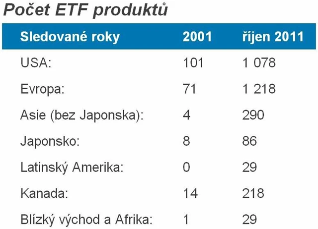 Před deseti lety nabízely světové burzy přibližně dvě stovky burzovně obchodovaných fondů. V říjnu minulého roku se podle statistiky společnosti BlackRock jejich počet přiblížil třem tisícům. V současnosti pochází nejvíce burzovně obchodovaných fondů od správců z Evropy.