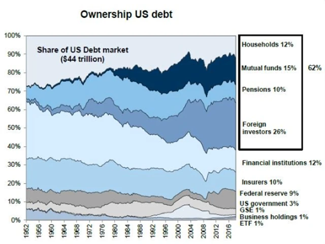 V posledních dvaceti letech došlo k přesunu dluhopisů z finančních institucí do rukou zahraničních investorů. To sice u některých amerických patriotů vyvolává obavy, ale globalizace je i v tomto případě "neúprosná". Podle Bena Carlsona ze společnosti Ritholtz Wealth Management je to z hlediska světového míru mezi dominantními oblastmi světa dobrá věc.